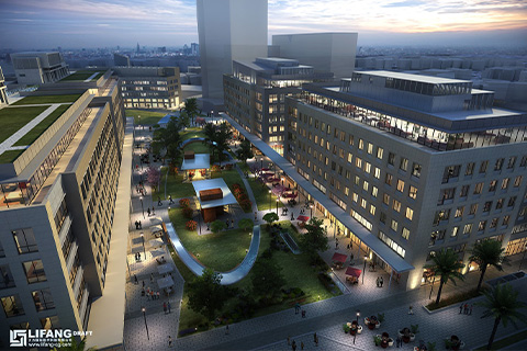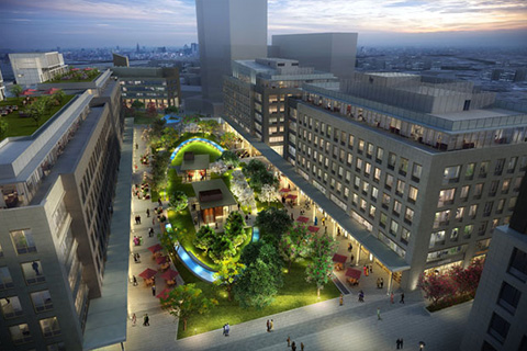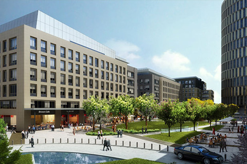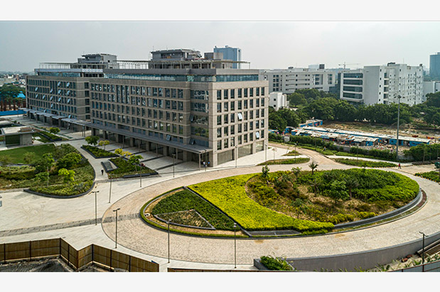 One On One is the most prestigious business address in Sector 16, Gurgaon, on NH 48. The 12-acre project is in the form a large, elegant piazza framed by six graceful structures ranged along its sides. The piazza is the focal point of restaurants and retail outlets on the ground floors of the surrounding buildings. The project is 4 star GRIHA certified and is built along ecology-conscious lines in natural stone and energy-efficient glass. First phase of the campus is leased to Air India.