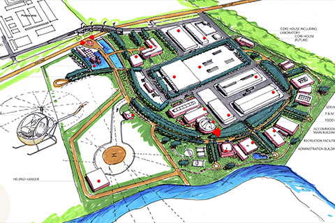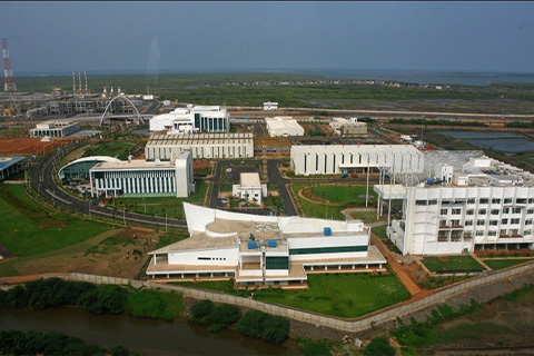 Set in one of the hottest regions of India with temperatures peaking at 48 degrees centigrade, this is the main gas extracting and distribution point of the Krishna Godavari Dhirubhai 6, off the coast of AP. The campus provides for ventilated warehouses,, operations offices, a state of art learning centre, a helipad and heliport lounge, an occupational health centre, control centres, a high-quality accommodation building, a recreation building, food court, and cafeteria.