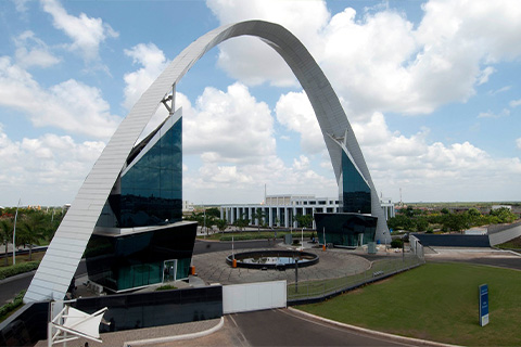 The buildings and amenities are set within ample water bodies and a 10,000 tree landscaped area with species drawn from the locality that seeks to mitigate the harshness of this geographical environment.