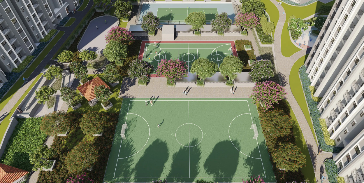Planned to celebrate the joy of quality living with 25+ outdoor amenities like a basketball court, tennis court, cricket practice pitch, outdoor gym, amphitheatre, pet park, kids’ play area and many more. here, you will find the clubhouse of your dreams that offers a range of amenities for residents, including a swimming pool, a multipurpose hall, table tennis, a gym, and a business center.