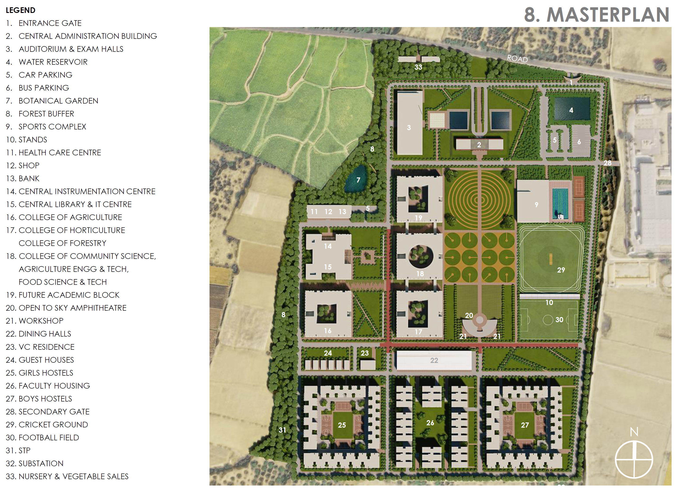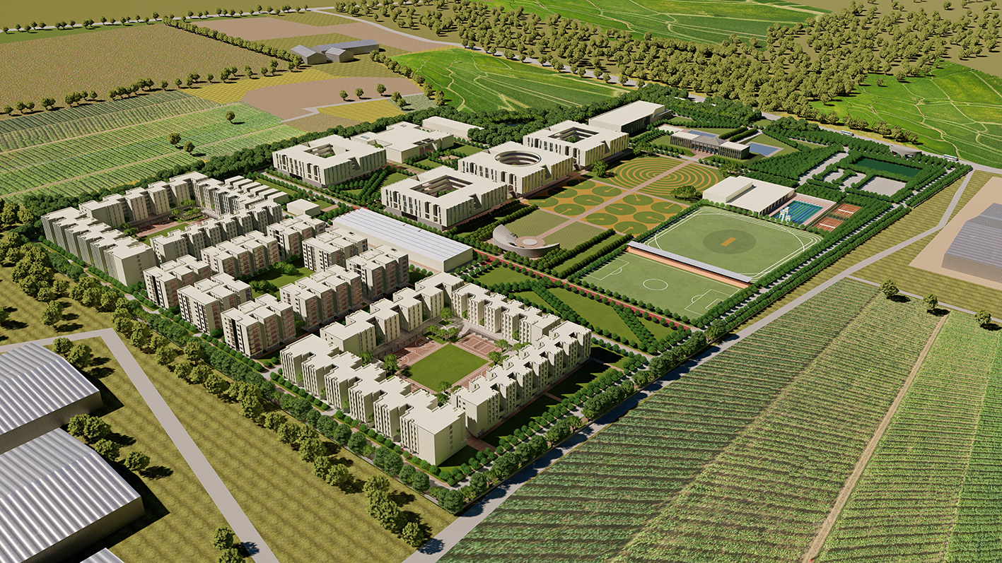 Set up on an around 60+ acres space, Kaveri University is a campus that facilitates learning and research through interactive and collaborative processes. It is also a resource extended beyond academia i.e. a resource for local farmers and industries to have access to testing facilities, consultation and guidance within curated outdoor activities.